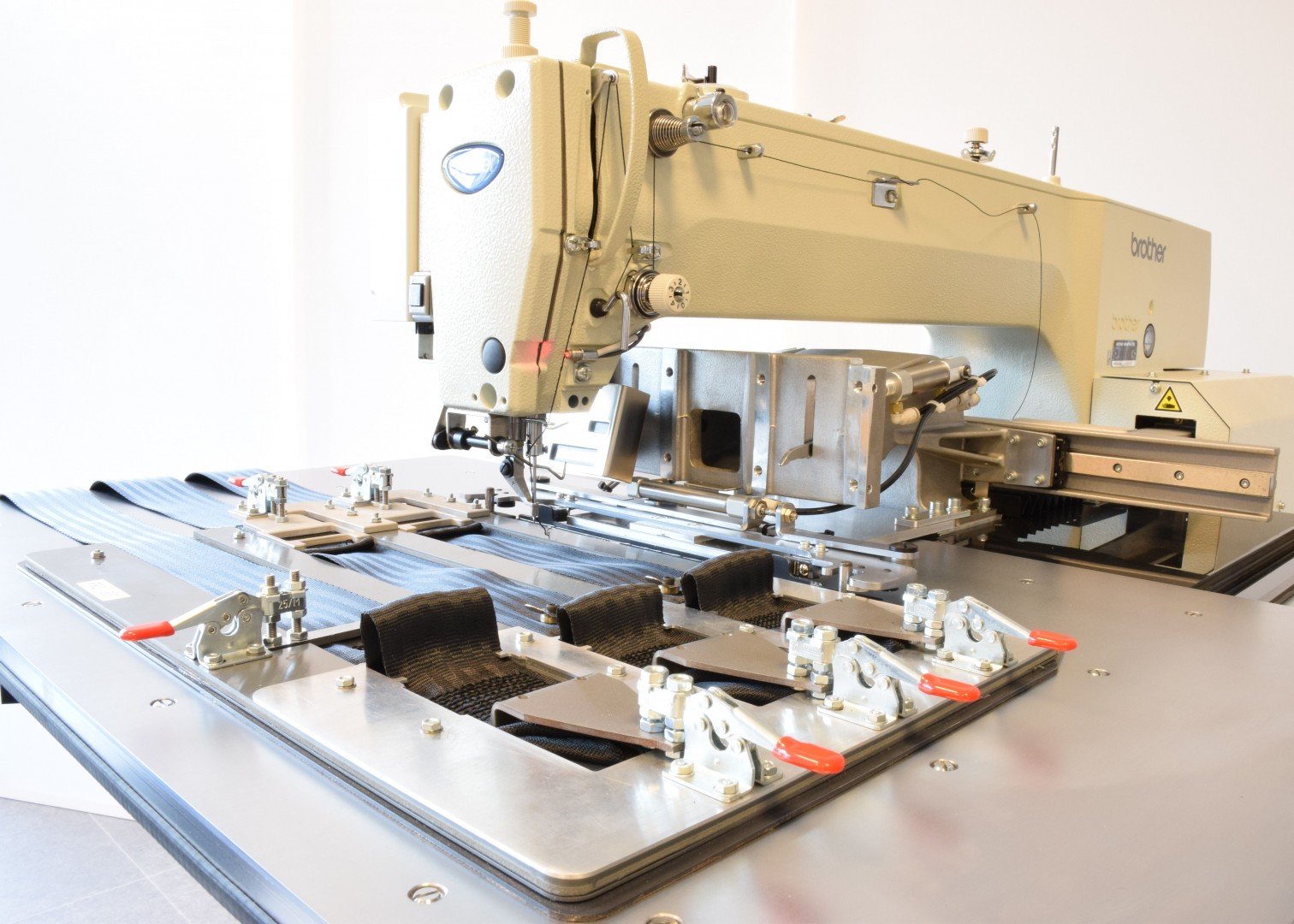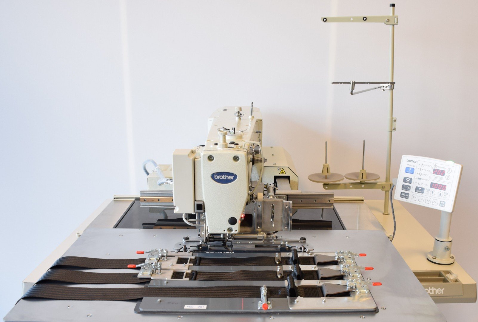 Brother BAS342G-01A - Computergestuurde patroonstiksteek machine met alternerende persvoet. De machine heeft een naaibereik van 300 x 200mm, en is uitgerust met een pneumatisch klemsysteem. De machine is voorzien van ingebouwde motor en een eenvoudig te bedienen programmakastje waarmee de operator al de voorgeprogrammeerde patronen kan selecteren.